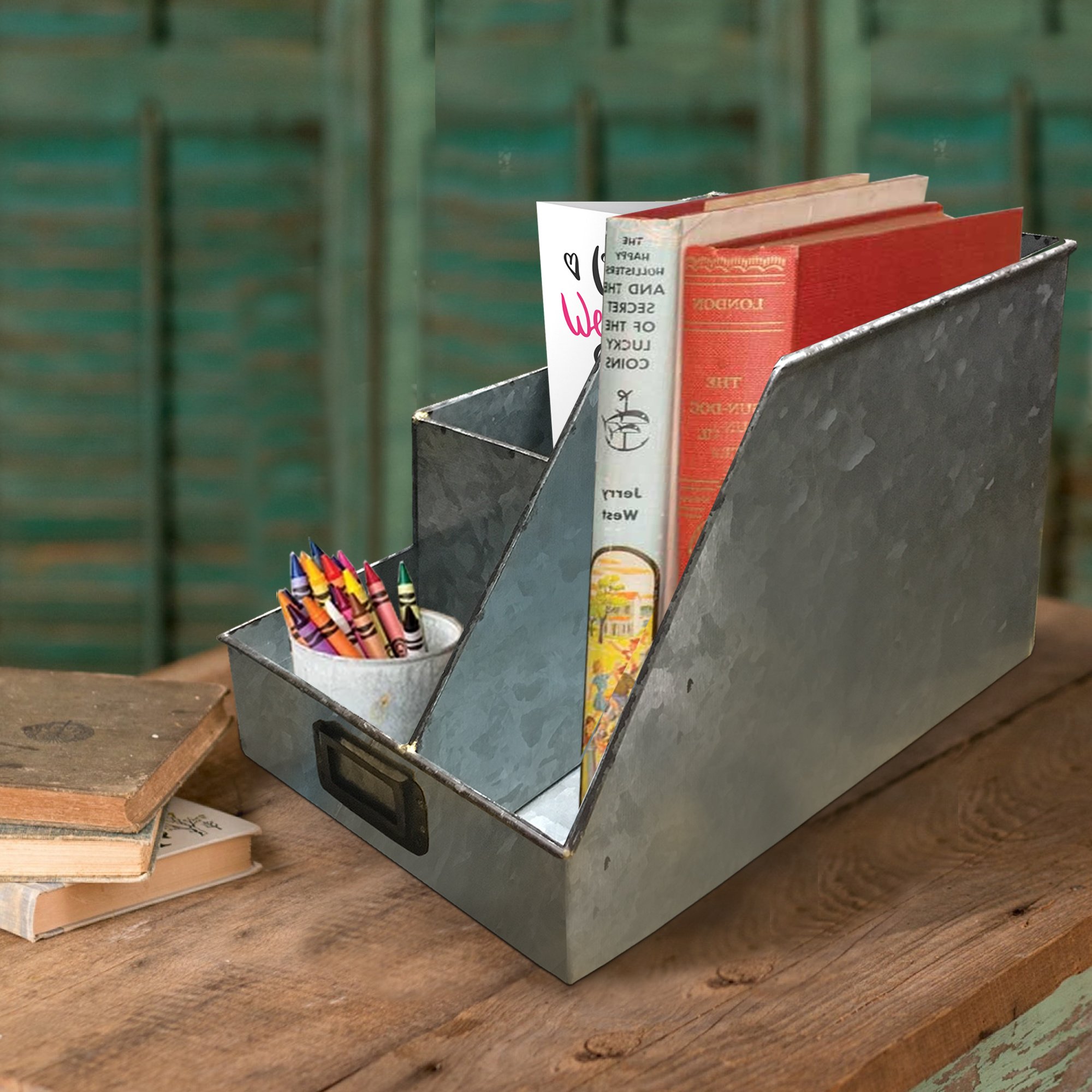 Declutter your home or office space with the addition of this decorative and functional multipurpose caddy. Constructed from metal in the galvanized gray finish with rustic details that gives it a farmhouse appeal and easily blend with your existing decor. Features four open partitioned compartments allow you to hold your pens, pencils, stationery supplies, or other office accessories at one place in an organized manner. This decorative multipurpose caddy sits flat on any tabletop and comes with a nameplate that you can change accordingly. This functional piece makes a great addition in your office, home office, kitchen, or any space that needs an organized space.